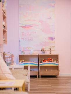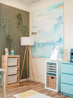 Die Praxis für Logopädie May bietet in unserer Praxis in Haßloch großzügige, barrierefreie Räume, die einladen und Geborgenheit vermitteln. Helle Farben, freundliche Details und liebevoll gestaltete Bereiche schaffen eine Umgebung, in der sich Kinder und Erwachsene sofort wohlfühlen können. Ob beim Spielen, Üben oder im Gespräch – die Räume sind so eingerichtet, dass sie Ruhe und Sicherheit geben und gleichzeitig Platz für Bewegung und Entwicklung lassen. Direkt vor dem Gebäude stehen Parkplätze zur Verfügung, der Zugang ist barrierefrei.